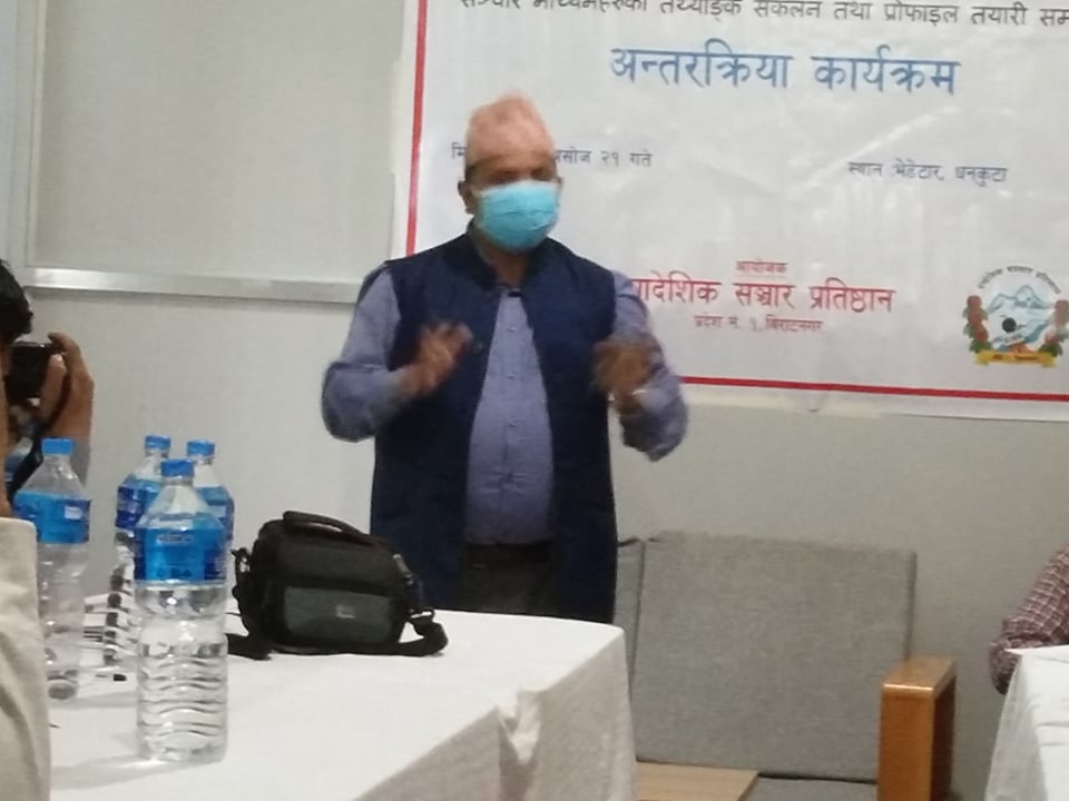 पत्रकारहरुकोलागि सरकारी साधनस्रोतबाट परिचालित बिराटनगरमा रहेको प्रादेशिक सन्चार प्रतिष्ठानले बिहिबार भेडेटारको एक होटलमा अन्तरक्रिया कार्यक्रम मार्फत बार्षिक कार्ययोजनाको रणनीति तय गरेको छ । प्रदेश न १का १४ वटै जिल्लामा रहेका संचार माध्यमहरुको तथ्यांक संकलन तथा प्रोफाइल तयारी सम्बन्धी अन्तरक्रिया कार्यक्रममा प्रतिष्ठानको प्रमुखको हैसियतले बरिष्ठ पत्रकार यज्ञ शर्माले अन्तरक्रिया कार्यक्रमको औचित्यमाथि प्रकाश पार्नु भयो । आन्तरिक मामिला तथा कानुन मन्त्रालयका सचिब कालीप्रसाद पराजुलीले प्रमुख अतिथिको रुपमा बोल्दै पत्रकार र पत्रकारिताको बिकासकालागि आफु सरकारीनीति नियम भित्र रहेर कुनै कसुर बाँकी नराखी काम अघि बढाउने प्रतिबद्धता ब्यक्त गर्नु भयो ।काठमाण्डौको सिडिओ कार्यालयबाट भर्खरैमात्र सरुवा भएर प्रदेश न.१मा आएका सचिब पराजुलीले जुनसुकै पेसा गर्दापनि इमान्दारीपूर्बक गर्नु पर्ने उल्लेख गर्दै मेहिनेत गर्दै जाँदा एकदिन फल पाइने हुंदा धैर्यता कायम राख्न अनुरोध गर्दै तत्काल रिटर्न नआउंदा छोडेर ंिहंडी हाल्ने गर्नु नहुने बताउनु भयो । बिरोध र बाधा गर्नेहरु जहाँ पनि हुने भन्दै पराजुलीले आफुले राष्ट्रपतिबाट प्राप्त गरेको पदकबारे ओलीको मान्छे भनेर आफनै कर्मचारी लाइनबाट इस्र्या,डाह भएको उल्लेख गर्दै राम्रो काम गर्दै जाँदा कोहीसंग डराउनु नपर्ने बताउनु भयो ।अहिलेको सरकारले दिएको पदक सिफारिस त अघिल्लो ओली सरकारले गरेको होनी भनेर भन्नेहरु आफनैमा रहेछन । सचिब पराजुलीले गुनासो गर्दै पत्रकारिता झन संबेदनशील भएकोले यसमा लाग्ने पत्रकारहरु राजनीतिक उत्तर चढावहरुबाट बिचलित नहुन हौस्याउनु भयो । मासिक ३ लाख रुपैंयाँ तलव खाने र दशैं मान्न धौधौ परेको अबस्थाका पत्रकार पनि यही क्षेत्रमा रहेको कुरा ब्यबहारिक हिसावबाट महसुस गरिरहेको छु भन्दै सचिव पराजुलीले पत्रकारितामा दलित,मधेशी,महिला,आदीबासी जनजातीको आफनै खालका समस्याहरु रहेको यही अन्तरक्रियाबाट थाहा पाउंदा अझ बढी सोचेर काम गर्ने उत्साह जागेको बताउनु भयो । प्रतिष्ठानको आगामी कार्ययोजना अनुसार अघि बढन पत्रकार तथा सञ्चारकर्मीसंग सम्बन्धित प्रश्नवली निर्माण र संञ्चार गृहेसंग सम्बन्धित प्रश्नवलीकोलागि आबाश्यक सरसल्लाह लिन यो कार्यक्रम गरिएको कार्यक्रमका सभापति समेत रहेका प्रतिष्ठानका प्रमुख यज्ञ शर्माले बताउनु भयो ।प्रतिष्ठानका सदस्य पत्रकार महेन्द्र बहादुर बिष्ट र यज्ञ शर्माको छुटटाछुटै कार्यपत्रमाथि टिप्पणी गर्ने मोहन भण्डारी र सुभद्रा प्याकुरेल लगायत पत्रकारहरु पीबी दियाली, श्यामसुन्दर सुतिहार,डिकेश लामा,गोपाल काफले,सन्जय सन्तोषी राई,सरिता बराइली र हेमा चेम्